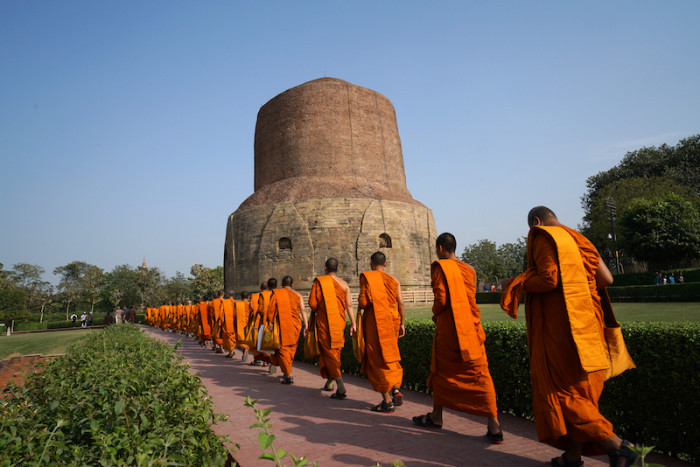 Đến Varanasi, đoàn khởi hành đi Sarnath (cách Varanasi 10km), viếng bái Lộc Uyển (Vườn Nai) – nơi Đức Phật thuyết bài Pháp đầu tiên “Tứ Diệu Đế” cho 5 năm anh em A Nhã Kiều Trần Như và cũng là nơi hình thành nên Tam Bảo: Phật – Pháp – Tăng. Viếng bái và kinh hành quanh cổ tháp Dhamekh – nơi Đức Phật chuyển pháp luân.