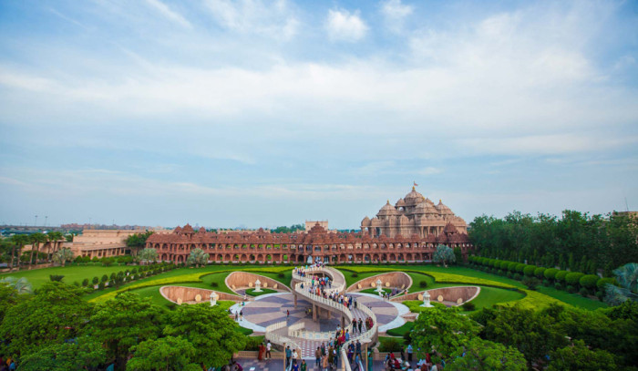 Đền Akshardham – một tổ hợp đền, tháp Hindu bằng đá sa thạch hồng và cẩm thạch trắng kỳ vĩ nhất của Ấn Độ được khởi công xây dựng vào năm 2001 và hoàn tất vào năm 2005.